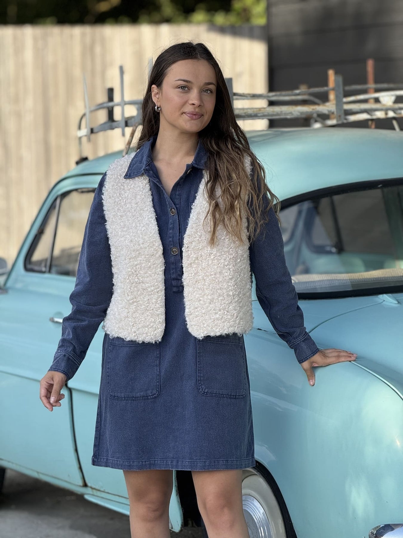 Mayu はただのワンピースではありません。時代を超えて愛されるデニムの魅力に、今らしさをプラスした特別な一枚です。これを纏えば、自信と自然体の美しさを引き出し、どんな日もスタイリッシュに過ごせます。